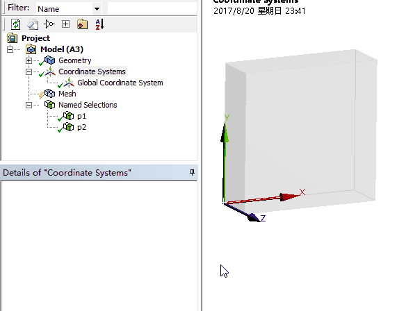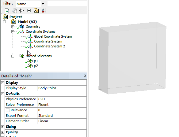在创建网格之前,首先进行边界命名,两个周期面分别命名为p1和p2。