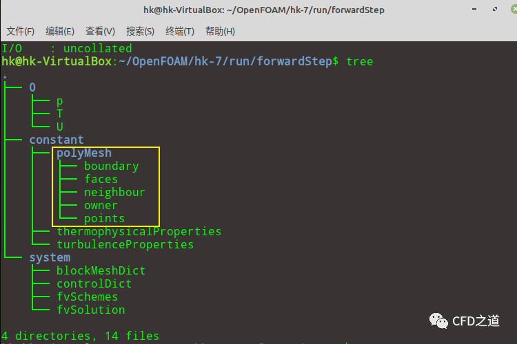 此时constant文件夹中多出了一个名为polyMesh的文件夹,如下图所示,该文件夹中包含了网格的所有信息。