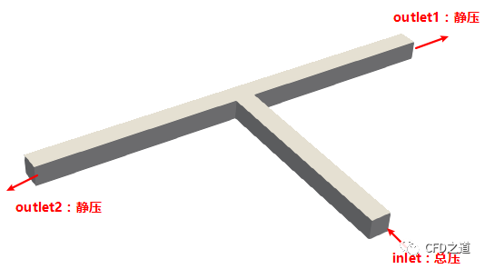 计算模型如图所示,包含1个总压入口及两个静压出口。