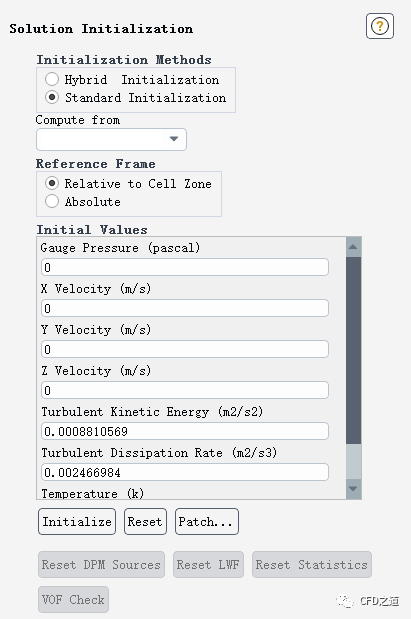 Standard Initialization:采用显式指定物理量值的方式对全体计算区域赋予初始值。采用此种方式进行初始化后,物理量在整个计算区域内的分布为均匀分布。