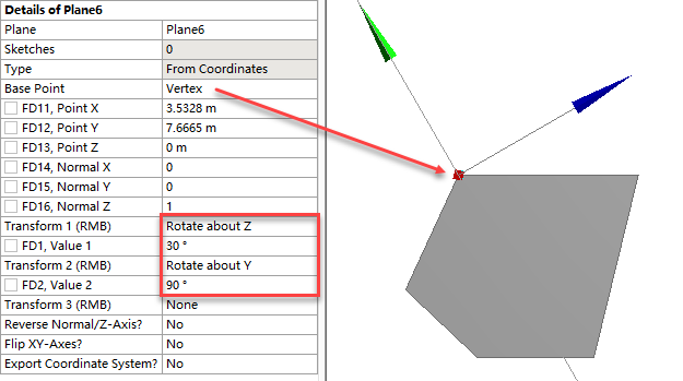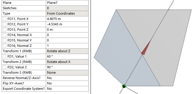 按如图所示创建新的Plane。注意用于切割的只能是XY面,灵活旋转以使XY面与待切割的面法向保持一致。