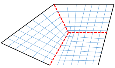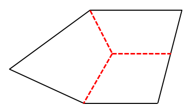 经过下图所示的切割,将五边形面切割为三个四边形面,此时就可以划分为map型网格了。