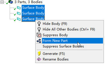 完了别完了Form a New Part将其组装成一个Body,以便于划分网格时节点一致。