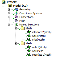 双击C2模块进入Mesh中,可以看到两个几何网格全部导入进来了。