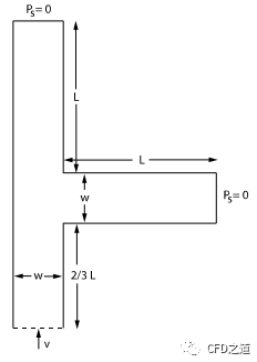 计算模型为如下图所示的T型管道,几何尺寸L=3.0m, W=1.0m。