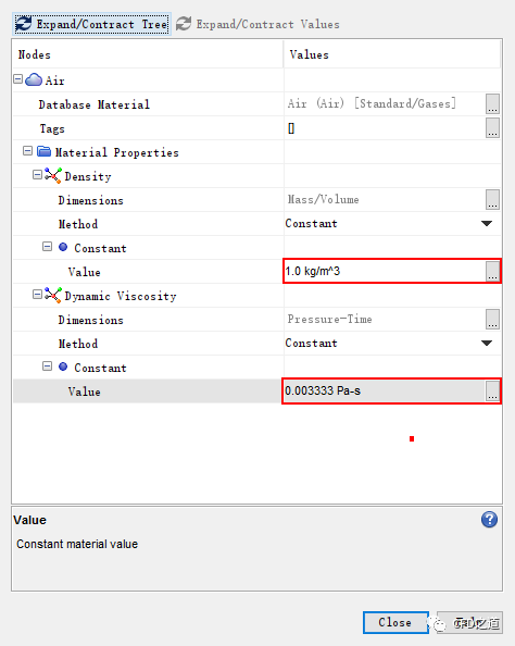 设置密度为1 kg/m3,动力粘度为0.003333 Pa-s