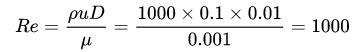流体流经一个直径0.01m,长度0.5m的管道,计算其内部流场。流体介质为水,密度1000kg/m3,动力粘度0.001 pa.s,入口流速0.1 m。