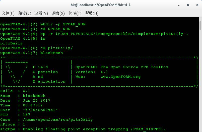 启动Docker后就可以使用OpenFOAM的各种功能了。