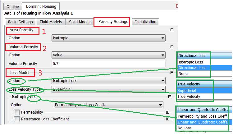 在选定损失模型后,需要选取损失模型对应的速度类型,有Superficial、True Velocity两个选择,Superficial是指孔隙率为100%时流动的速度。True Velocity指实际的流速。