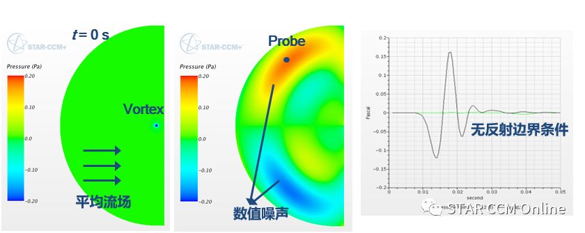 在STARCCM+中有且仅有自由流边界条件是在法向方向上无数值噪声反射的,其他方向上存在较小的数值噪声反射。其他类型的边界条件均存在数值噪声反射。
