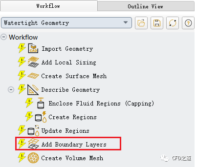 之前版本中watertight流程的边界层控制功能被放置在体网格生成节点中,新版本将边界层控制功能独立出来,个人认为是一个不错的改进。