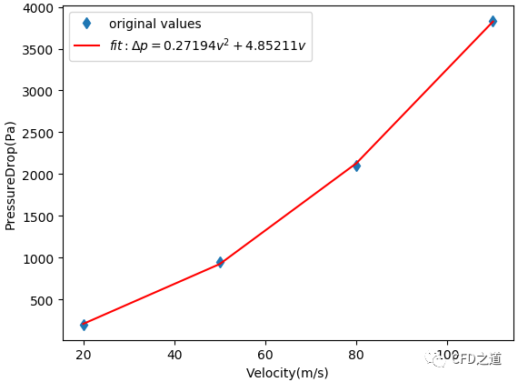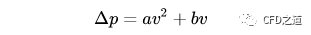 Fluent中多孔介质区域压降与速度之间的拟合函数形式为: