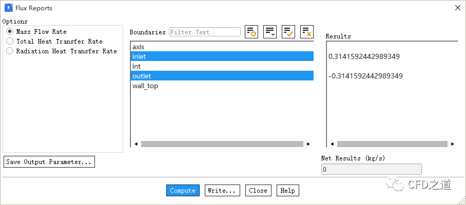 入口流量0.314159 kg/s,出口静压力0 Pa。