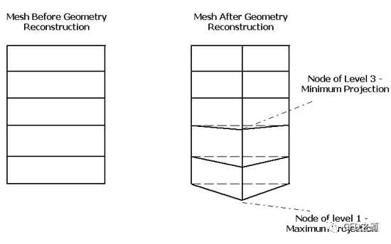 Levels of Projection Propagation:此参数允许指定用于几何重构的节点传播跨越的节点层数。值1表示只投影边界上的节点,值2表示投影边界上的节点和下一层的节点,依此类推,如下图所示
