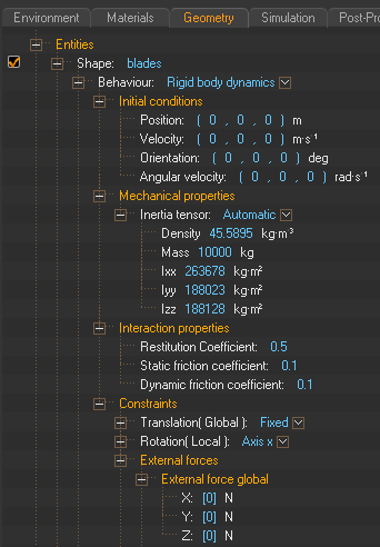 设置Shape:blades的Behaviour为Rigid body dynamics