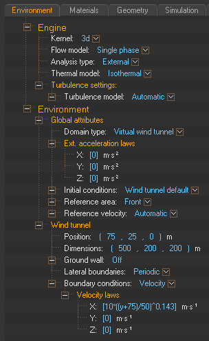 设置Velocity laws X为[10*((y+75)/50)^0.143]