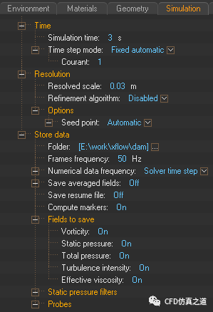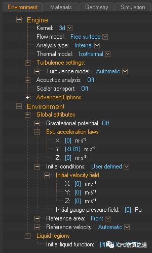采用默认设置。默认材料为water。