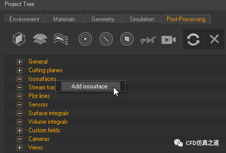 右键选择模型树节点Isosurfaces,选择弹出菜单Add isosurface添加等值面