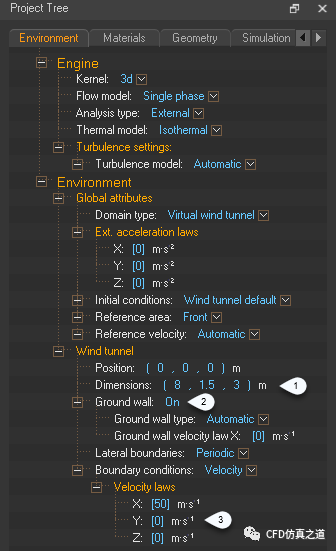 设置Boundary conditions为x方向50 m/s