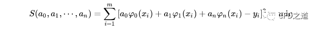 例如,如果函数f是线性函数f(x)=ax^2+b, 那么参数 a和b就是需要确定的值。如果用p表示函数中需要确定的参数,那么目标就是找到一组p,使得下面的函数S的值最小: