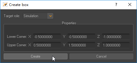 设置lower corner坐标为(-0.5,-0.5,1),设置Upper Corner坐标为(0.5,1.5,1)