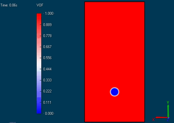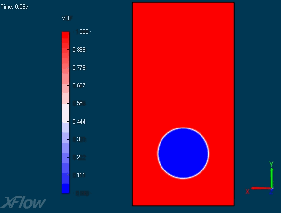 案例如下图所示。充满液体的容器中存在一个气泡,利用XFlow模拟油滴从容器底部上升至顶部的过程。