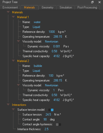 本案例包含两种介质,一种为水,另一种为油。如下图所示进行设置。