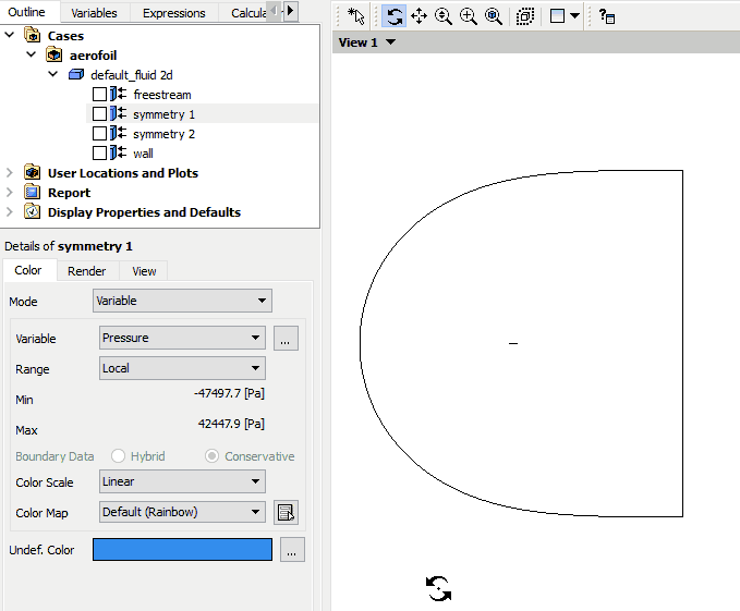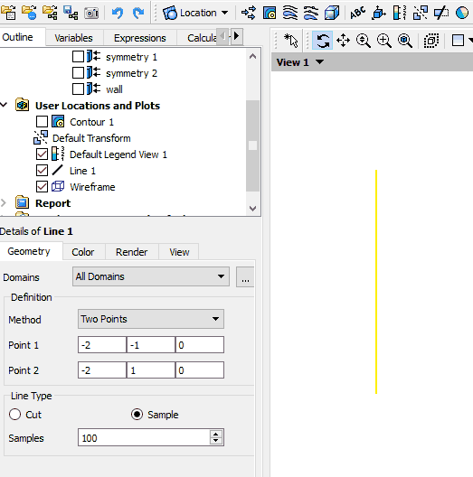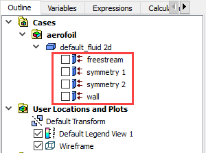由于2D的翼型模型导入到CFD-Post中被拉伸成了三维模型,因此需要创建多段线来表达翼型。这里采用翼型面边界wall与symmetry 1边界的交线。