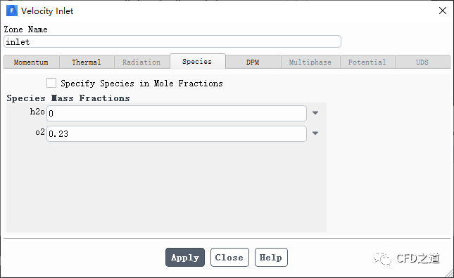 注:由于液滴蒸发后产生气相组分,因此这里需要打开组分输运模型