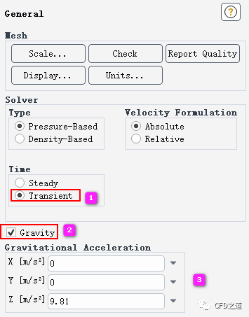 选中选项Gravity ,设置重力加速度方向为Z轴-9.81 m/s2