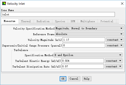 1 、 Inlet 边界设置