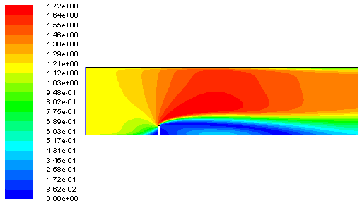 案例描述: 本案例来自于丹麦海事研究所。流动计算域模型如图所示,包含入口、出口及壁面。案例采用 2D 模型计算。计算域流体介质为空气(标准大气压,温度 293K ),来流速度 1.17m/s 。雷诺数基于障碍物高度(案例为 40mm ),本案例雷诺数为 3115 ,入口位置湍动能及湍流耗散率分别为 0.024m2/s2 及 0.07m2/s3 。流动过程为等温、湍流及不可压缩流动。