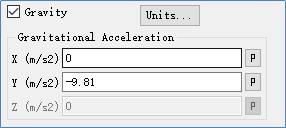 激活选项 Gravity ,设置重力加速度为 Y 方向-9.81m/s2 。