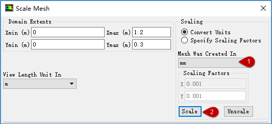 设置 Mesh Was Created In 项为 mm