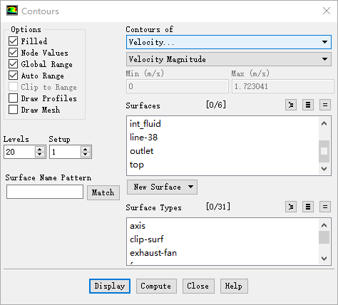 选择 Contours of 下为 Velocity… 及 Velocity Magnitude