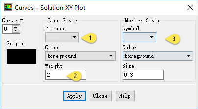 点击 Curves… 按钮,设置Line Style中的 Pattern 为实线,设置 weight 为 2