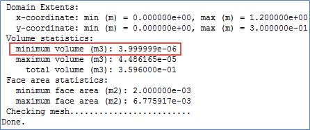 点击 Check 按钮,输出网格信息如图所示。确保网格最小体积为正值。
