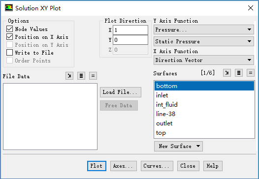 利用 XY Plot 输出底部边界上的压力分布。