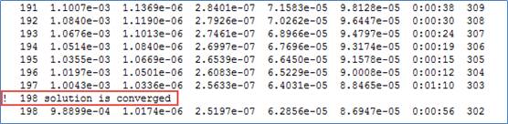 计算在 198 步时收敛,软件给出收敛提示并自动停止计算。如图所示。