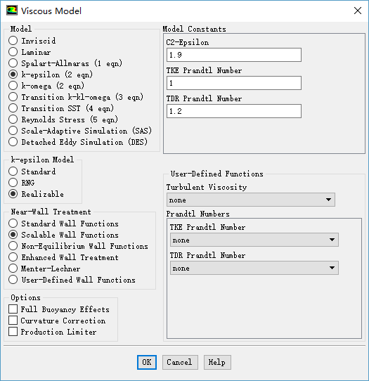 选择k-epsilon Model 为 Realizable