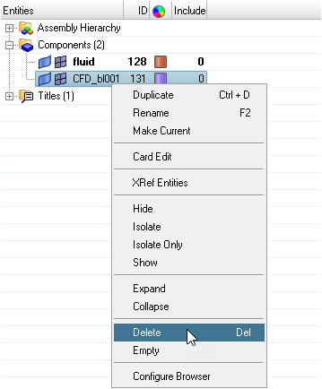 选择菜单BCs → Organize或使用快捷键shift+F11打开网格组织面板,将CFD_bl001移动至fluid中
