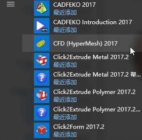 开始菜单中启动CFD(HyperMesh)2017启动HyperMesh