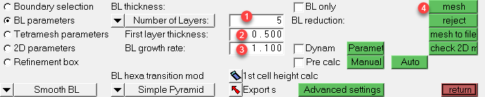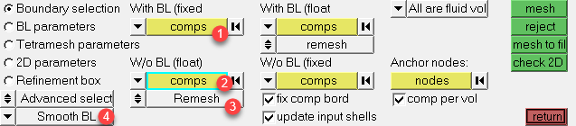 设置下图中3和4位置分别为Remesh与Smooth BL