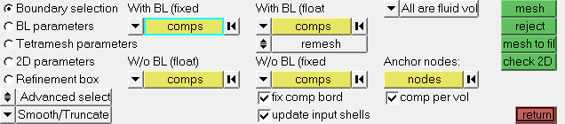 选择Boundary selection子页面,点击With BL(fixed)下方的comps按钮,在弹出的页面中选择wall