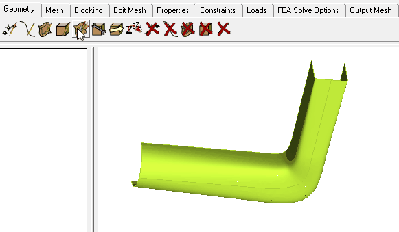 导入的是一个曲面。虽然ICEM CFD的分块六面体功能并不要求几何必须是三维实体,然而本案例导入的几何模型缺少了必要的线条。同时为了后续网格划分方便,还需要添加一些辅助几何。