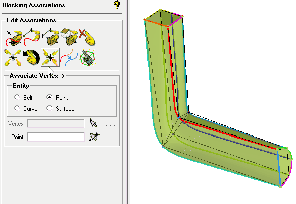 在ICEM CFD分块划分六面体中,最为重要的一环是进行关联。这里先进行点关联,之后进行线关联。关于关联的详细介绍,我们留到后面的专题中去讲述。