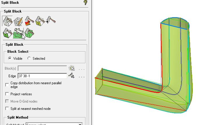 选择Blocking标签页,点击按钮Split Block,按下图所示进行O型切分