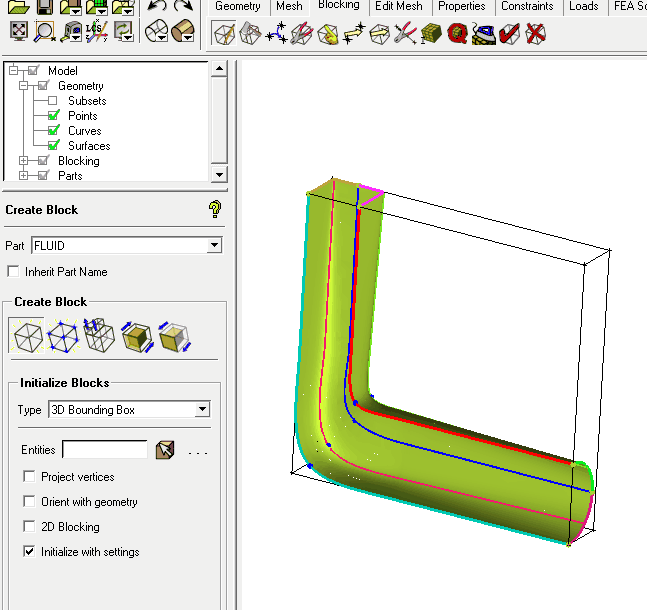 选择激活模型树节点Blocking > Pre-Mesh,可以观察生成的网格