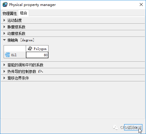 进入组合标签页(不知道谁翻译的,把Interactions翻译成组合,也是没谁了),设置接触角为60°