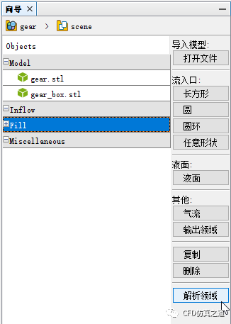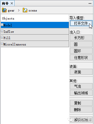 点击模型向导中打开文件按钮,在文件打开对话框中选择几何文件gear.stl 及 gear_box.stl
